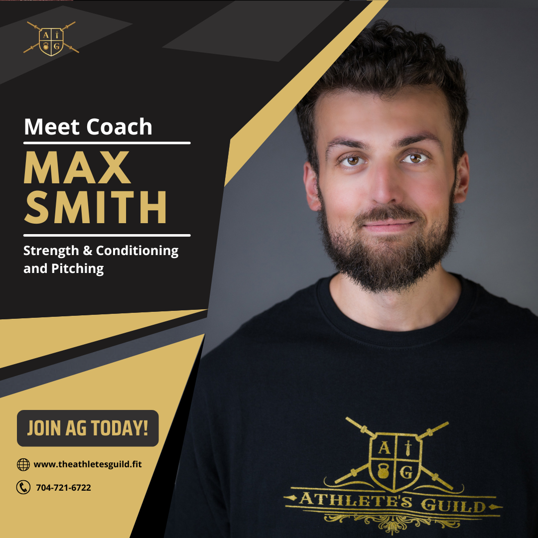 Outside the gym, Max enjoys lifting weights, frisbee golf, and playing with his cat, Pico de Gallo. His goal is to become his best self and make a positive impact on athletes.
